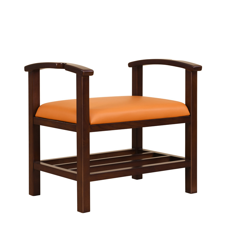 換鞋凳 基材:為實木白蠟木框架結構。 適老化處理 接觸面安全圓角 座面高420H ,有助于彎腰穿鞋 兩側助力扶手高度600H ,下設柵式透氣層架,兩側帶拐杖卡槽