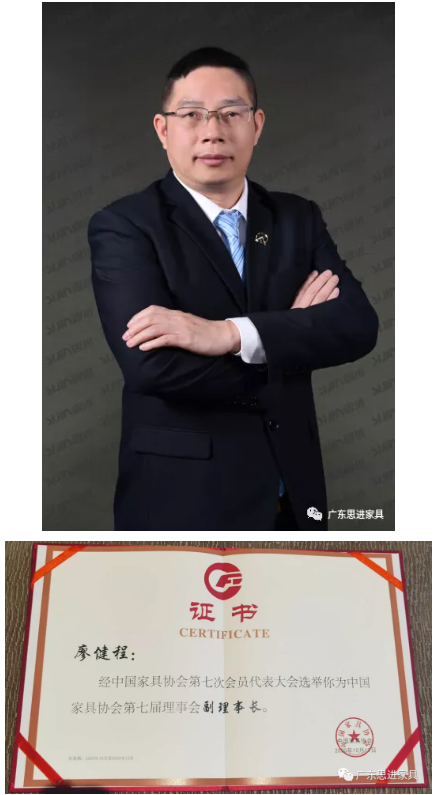 本次大會上,思進(jìn)家具憑借過硬的品牌實(shí)力,思進(jìn)董事長兼創(chuàng)始人廖健程先生榮幸當(dāng)選為“中國家具協(xié)會副理事長”,思進(jìn)家具再一次以實(shí)力,印證了其在品牌、產(chǎn)品、服務(wù)等方面的行業(yè)地位和創(chuàng)新精神。