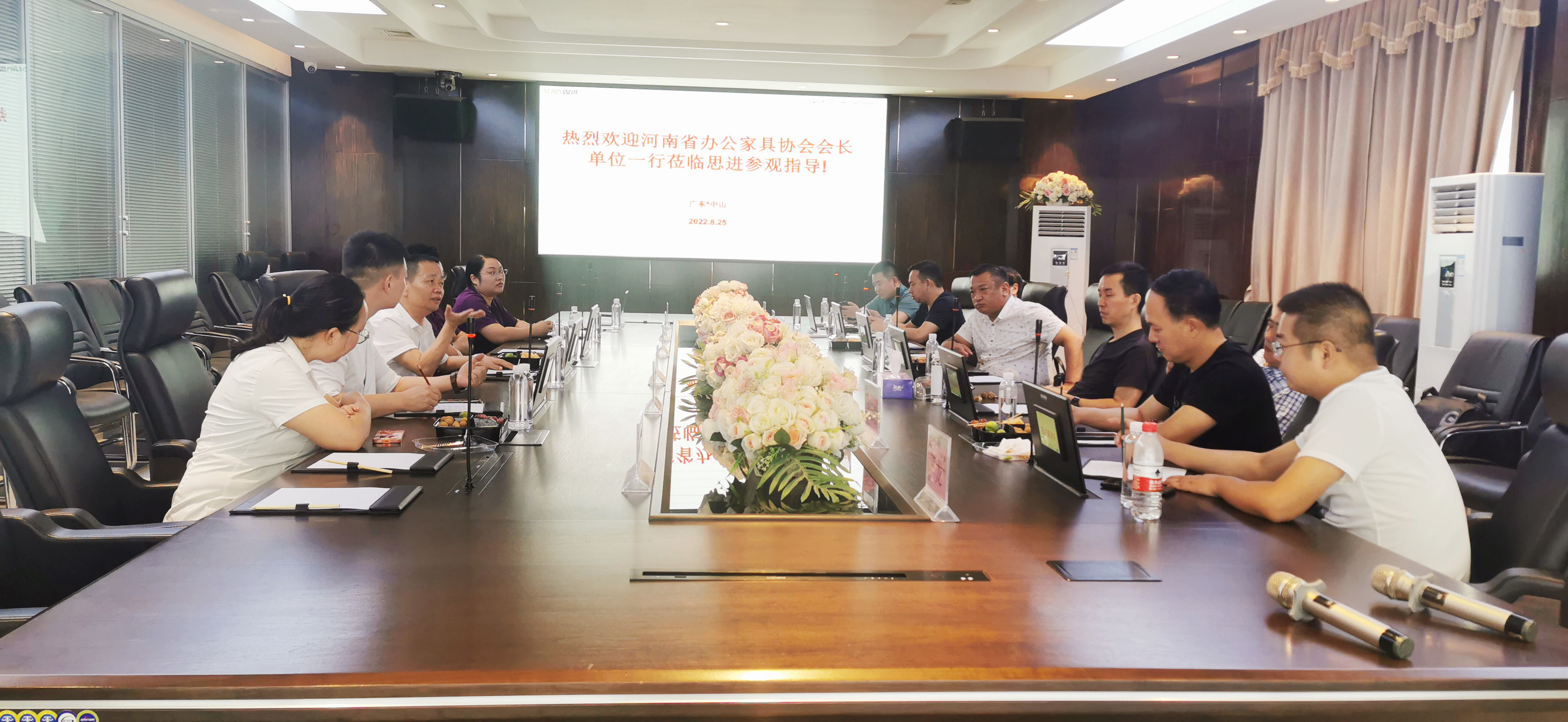 2022年8月25日,由河南省辦公家具協會會長張鋒帶隊的考察團一行到訪思進家具集團,考察團成員有會長張鋒(河南震美辦公空間設計總經理)、秘書長采彥峰(河南美斯頓家俱總經理)、監事長張曉(河南誠業家俱總經理)、常務副會長陳海亮(河南雅寶家俱總經理)、常務副會長胡云亮(洛陽科亞飛家具總經理)、常務副會長王金鋼(河南優美辦公總經理)、副會長嚴龍(河南點晴電子科技總經理)、副秘書長張小遠(鶴山市四方家具總經理)。思進家具集團總裁戴金榮出席接待,雙方進行交流洽談。